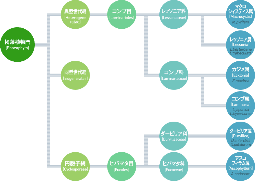 アルギン酸の原料である海藻(褐藻類)は生長力が旺盛で、中には全長60mに達する巨大海藻や、海底に直径2mもの付着器を這わせ、1日に何十cmも生長するような海藻もあります。
