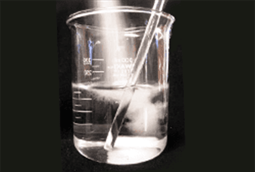 まずは、溶媒や溶液の性質ごとにアルギンの溶解性を整理します。〇印の付いている溶媒にはアルギンを溶かすことができます。