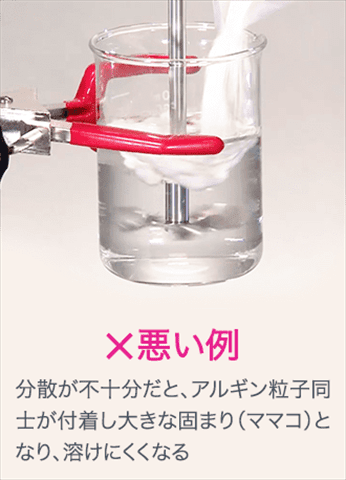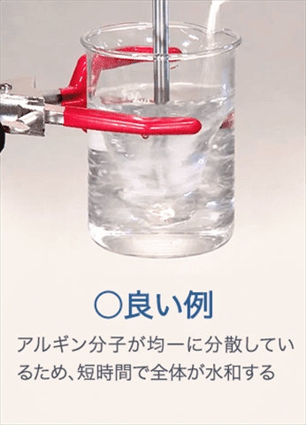 - 中性~アルカリ性の条件下ではエステルが分解してアルギン酸塩になります