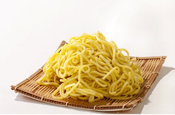 アルギンを配合した即席麺は麺線の硬さが増し、湯戻し後の食感が大きく改善します。また舌触りのツルツル感が増すとも言われており、多くの商品に利用されています。