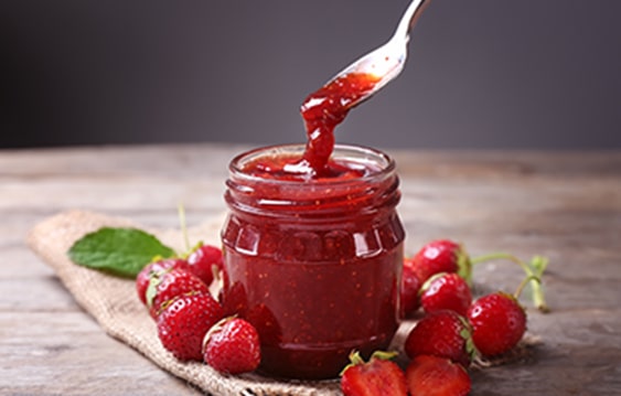 アルギンを添加すると、糖度の低いジャムでも固いゼリー状になることなく、スプレッド性の良好な離水しにくいジャムを作ることができます。糖度や果物の成分(カルシウムなど)を問わずに使用できます。