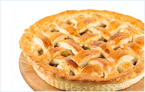 ラピッド法で作った速成のパイ生地は冷凍するとパイの層ができにくく、生地層が潰れて浮きが悪くなります。冷凍パイ生地にアルギンを加えると、生地層の一枚一枚がきれいに分かれて適切な空隙が入り、焼成後に浮き上がりが良いパイができます。食感のサクサク感だけでなく、生地層に適度な強度が付与されて全体に高くふっくらと膨らむため、歩留まりが改善します。生地伸びが良くなるので、捏ね伸ばしの作業効率も改善します。