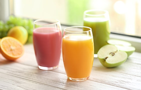 果汁飲料にアルギンを加えることで、飲料に適度な喉ごしと濃厚感を与え、食感を改良します。また原料由来の果肉成分など、飲料中に懸濁している固形分の沈殿を抑える効果も期待できます。