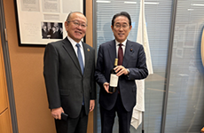 赤沢亮生経済再生担当大臣 千葉プラントを視察 岸田文雄前総理にキミカ製ワイン Don Mampeiを贈呈 |