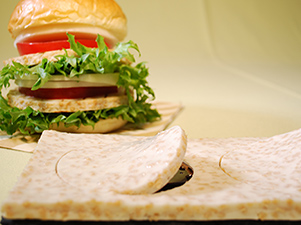 プラントベースミート(植物性代替肉)は畜肉と異なり混捏しても粘りが出ません。そのため、例えばバーガーパテのような形状に加工するためには、高い結着力を持つ「バインダー」を加える必要があります。アルギン酸のユニークな物性はそうした加工結着や成形にうってつけで、プラントベースミート(植物性代替肉)の製造に幅広く活用されています。