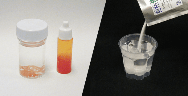 - 材料は全て「イクラ風ゼリー実験セット」と同じで、内容量のみ少なくなっています。
