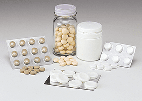 服用した錠剤が消化器の中できちんと崩れ、薬効成分を放出させやすくするため、錠剤の中には水を吸って膨らむ物質(崩壊剤)が配合されています。一般的にはデンプンなどの粉末が使われますが、アルギン酸を崩壊剤として配合すると、デンプンとは違った性質の錠剤をつくることができます。