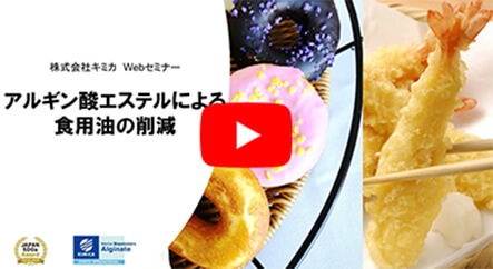アルギン酸エステルによる吸油量の削減は、食用油の節約はもちろん、カロリーダウンや揚げ物のサクサク食感の維持などにも効果を発揮します。