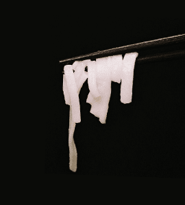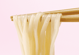 昆布酸501を使った麺線は適度な弾力性があり、茹で上げ後に麺線同士がくっつきにくくなる特長があります。