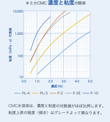 CMCの性質を左右する粘度とエーテル化度の組み合わせにより、幅広い分野でご使用いただけます。