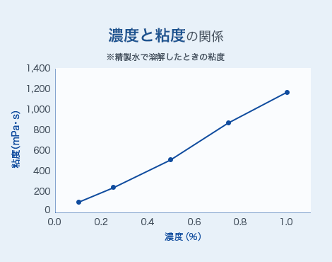 | CL2 | 1,200 ~ 2,000 mPa・s | 80Ms | 水溶液の透明度が高い製品です。食品や飲料の透明度を維持することができます。 |
