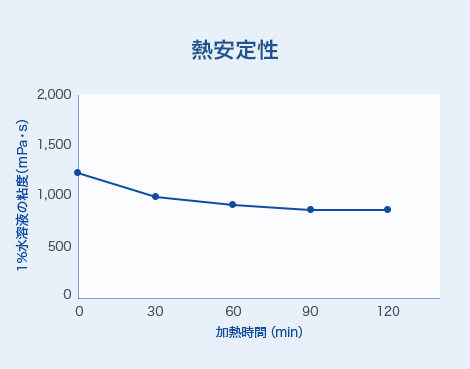 キサンタンガム水溶液は長時間の加熱に対して安定的な粘度を示します。