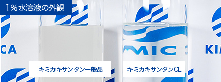 キミカキサンタンは粉末粒度の異なるグレードや、溶解した際に高い透明度となるグレードなどをラインナップしています。