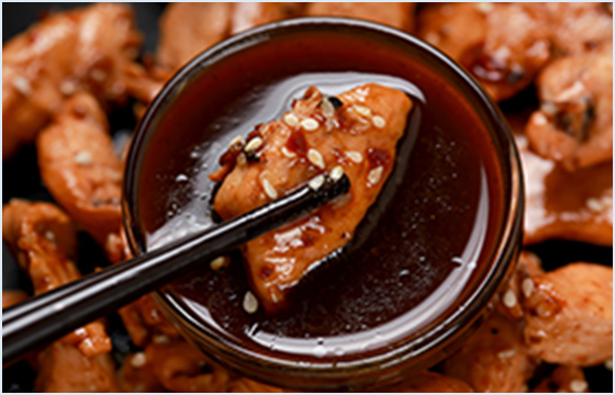 塩濃度の高いたれ、ソース類に適度な粘性を与え、濃厚感やコクを付与する増粘剤には、耐塩性に優れたキサンタンガムが最適です。キサンタンガムの粘性は長期安定であり、またデンプン類にはない耐酵素性にも優れているため、たれ、ソース類の食感を安定的に維持します。