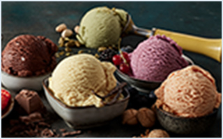 アイスクリーム、シャーベットなどの氷菓に少量のキサンタンガムを配合すると、適度な濃厚感、果実感をもたらす食感改良効果を発揮します。