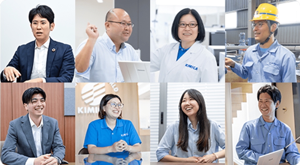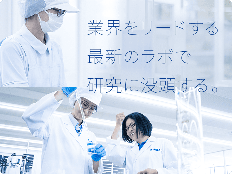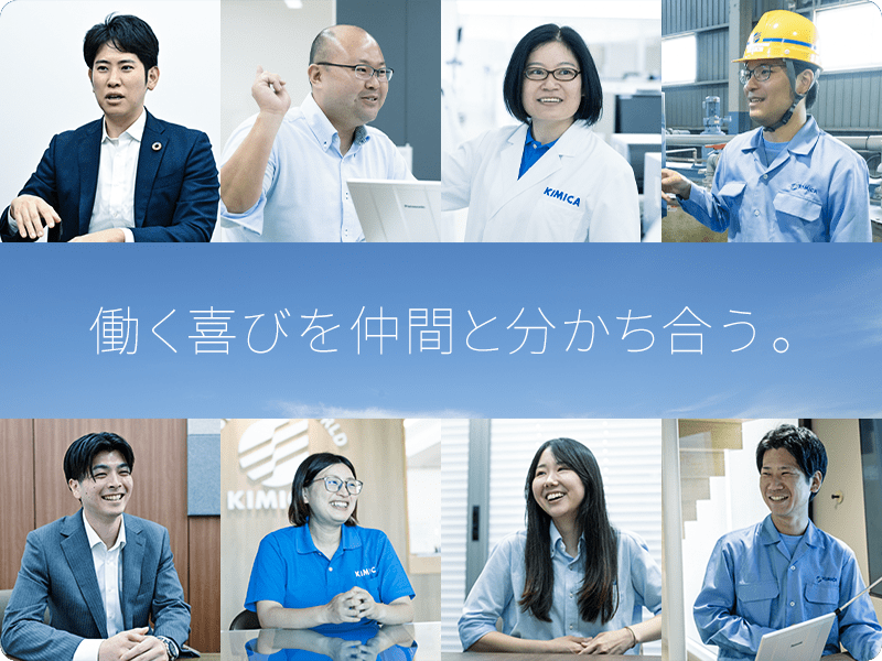 KIMICAには自分らしく活躍できる仕事がたくさんあります。ここでは、研究開発職、生産技術職、品質保証・品質管理職、営業職、ロジスティクス職の5つの職種に焦点を当て、その魅力をご紹介します。