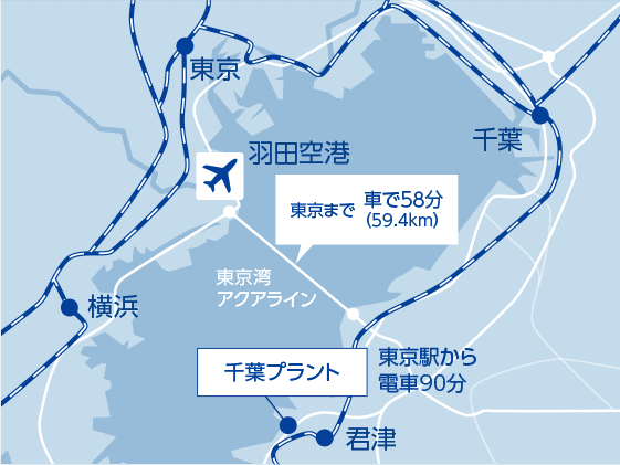 千葉プラントはバスに1時間乗れば東京に出ることができる場所です。