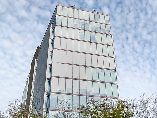 ダブルスキン窓の内側にブラインドを設置、その内側にガラスをはめ込んだ三重窓で断熱性能を飛躍的に高めています。さらに、ブラインドの自動昇降で直射日光を遮断し、屋外からの熱と紫外線の侵入をシャットアウト。景色を望む開放的なガラス張り空間と、安定した試験環境を両立させました。
