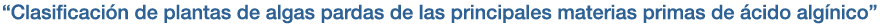 Hay una gran variedad de algas pardas, que son las materias primas para el ácido algínico. También están creciendo vigorosamente y prosperando en los mares de todo el mundo, y están atrayendo la atención como biomasa marina no utilizada.