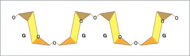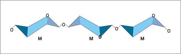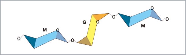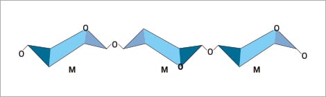 El ácido algínico es un polisacárido que tiene una estructura en la que dos tipos de ácidos urónicos, el ácido manurónico (M) y el ácido gulurónico (G), se polimerizan linealmente.