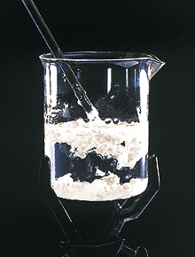 Agregue alcohol al polvo de alginato y forme una pasta. Con más cantidad de alcohol, el alginato se dispersa más fácilmente.